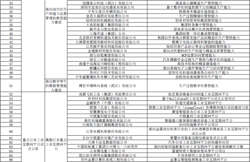 其中,兩化融合管理體系貫標方向共51個項目,包括14個面向產品全生命周期創新與服務的新型轉型能力建設項目、7個面向供應鏈管控與服務的新型轉型能力建設項目、29個面向現代化生產制造與運營管理的新型能力建設項目,以及1個面向數字孿生的數據管理能力建設項目。
