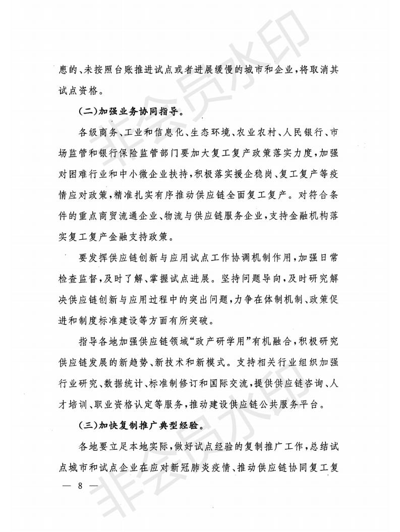 經(jīng)濟(jì)日報(bào)-中國經(jīng)濟(jì)網(wǎng)北京4月14日訊 據(jù)商務(wù)部網(wǎng)站消息,商務(wù)部等8部門近日聯(lián)合印發(fā)《關(guān)于進(jìn)一步做好供應(yīng)鏈創(chuàng)新與應(yīng)用試點(diǎn)工作的通知》,旨在發(fā)揮供應(yīng)鏈創(chuàng)新與應(yīng)用試點(diǎn)工作在推動(dòng)復(fù)工復(fù)產(chǎn)、穩(wěn)定全球供應(yīng)鏈、助力脫貧攻堅(jiān)等方面的重要作用,進(jìn)一步充實(shí)試點(diǎn)內(nèi)容,加快工作進(jìn)度。