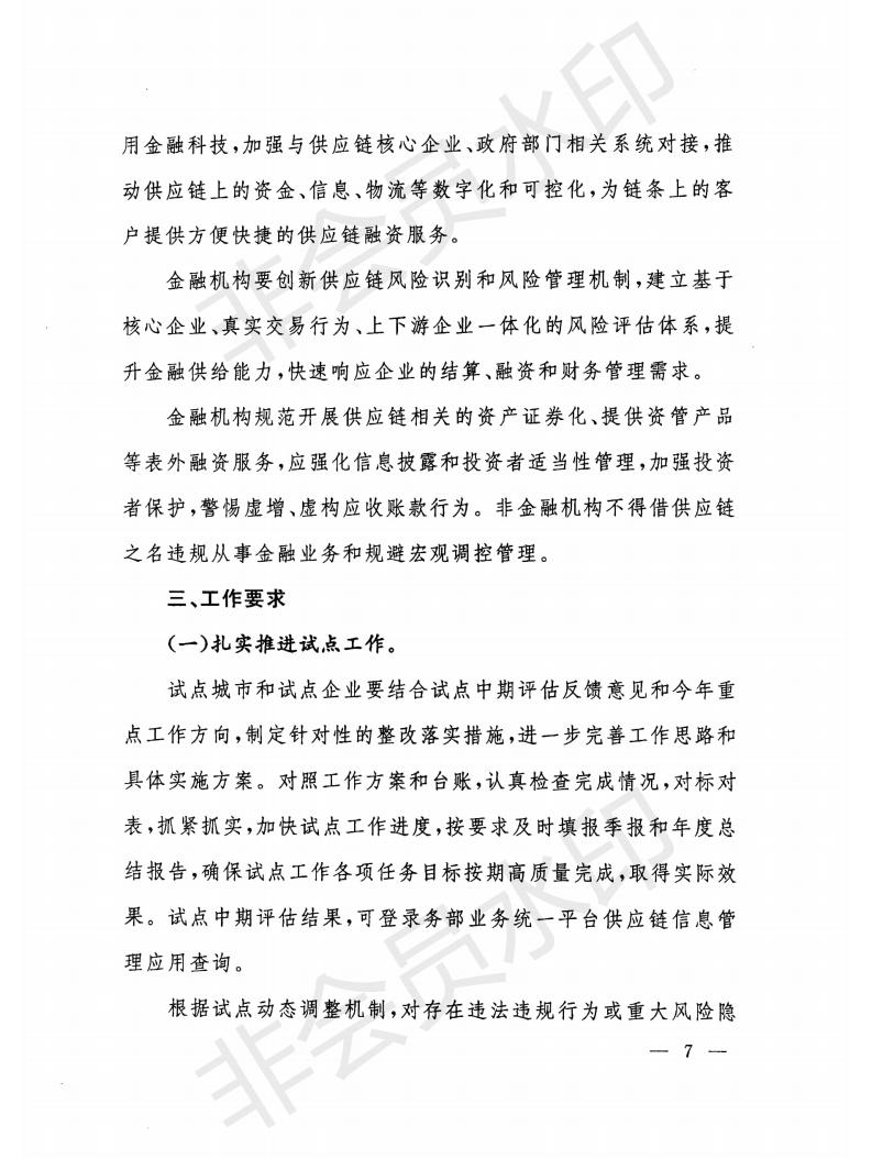 通知強(qiáng)調(diào),試點(diǎn)城市和試點(diǎn)企業(yè)要扎實(shí)推進(jìn)試點(diǎn)工作,結(jié)合試點(diǎn)中期評估反饋意見和今年重點(diǎn)工作方向,制定針對性的整改落實(shí)措施,進(jìn)一步完善工作思路和具體實(shí)施方案,加快試點(diǎn)工作進(jìn)度,確保試點(diǎn)工作各項(xiàng)任務(wù)目標(biāo)按期高質(zhì)量完成;各部門要加強(qiáng)業(yè)務(wù)協(xié)同指導(dǎo),精準(zhǔn)扎實(shí)有序推動(dòng)供應(yīng)鏈全面復(fù)工復(fù)產(chǎn),加強(qiáng)日常檢查監(jiān)督,指導(dǎo)各地加強(qiáng)供應(yīng)鏈領(lǐng)域“政產(chǎn)研學(xué)用”有機(jī)融合;各地要立足本地實(shí)際,加快復(fù)制推廣典型經(jīng)驗(yàn)。