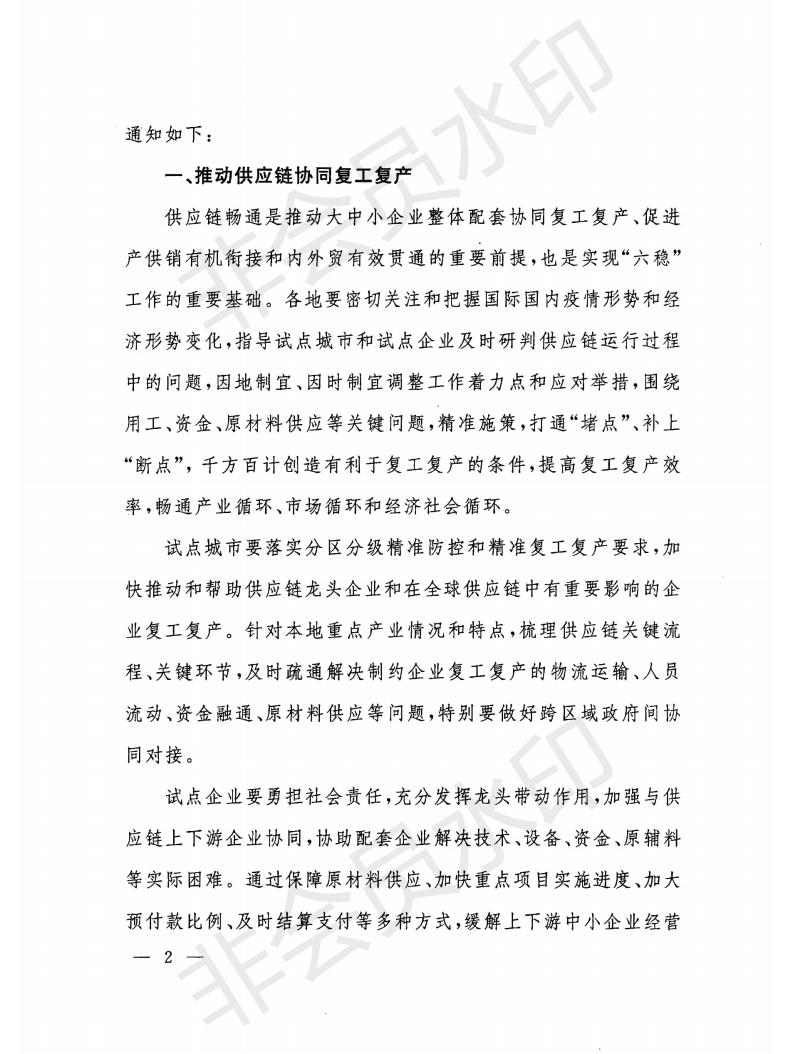 通知要求,試點(diǎn)城市要落實(shí)分區(qū)分級精準(zhǔn)防控和精準(zhǔn)復(fù)工復(fù)產(chǎn)要求,加快推動(dòng)和幫助供應(yīng)鏈龍頭企業(yè)和在全球供應(yīng)鏈中有重要影響的企業(yè)復(fù)工復(fù)產(chǎn);試點(diǎn)企業(yè)要勇?lián)鐣?huì)責(zé)任,充分發(fā)揮龍頭帶動(dòng)作用,加強(qiáng)與供應(yīng)鏈上下游企業(yè)協(xié)同,協(xié)助配套企業(yè)解決技術(shù)、設(shè)備、資金、原輔料等實(shí)際困難。