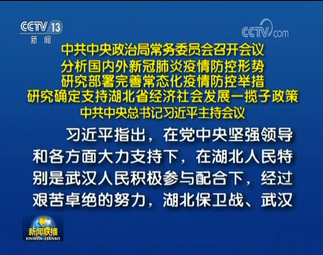 會(huì)議指出,在疫情防控中,湖北省特別是武漢市人民作出了很大貢獻(xiàn),付出了很大犧牲,經(jīng)濟(jì)社會(huì)發(fā)展和民生保障面臨的困難較大。黨中央研究確定了支持湖北省經(jīng)濟(jì)社會(huì)發(fā)展一攬子政策,從財(cái)政稅收、金融信貸、投資外貿(mào)等方面明確了具體措施。有關(guān)部門要會(huì)同湖北省認(rèn)真抓好組織實(shí)施,盡快落實(shí)到位。