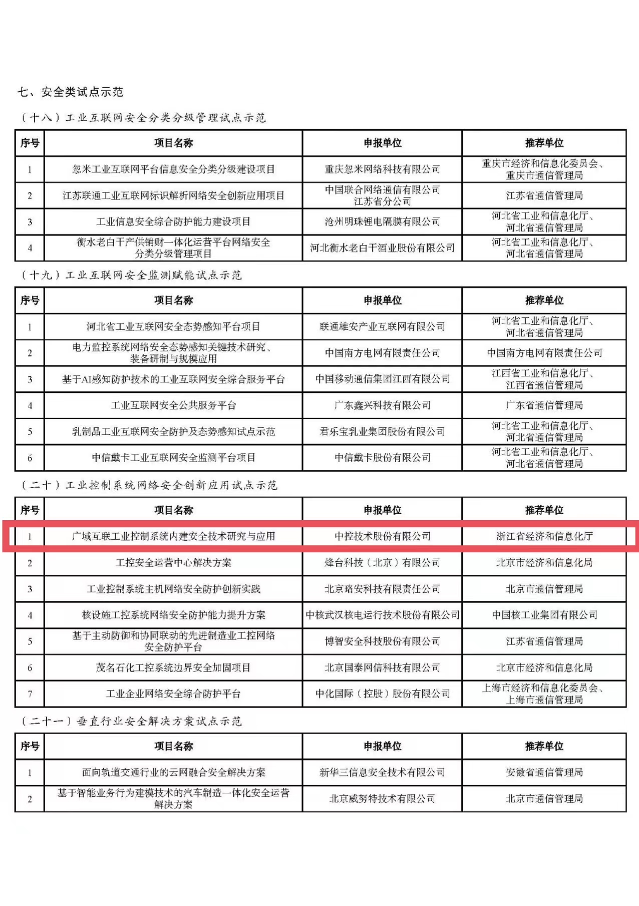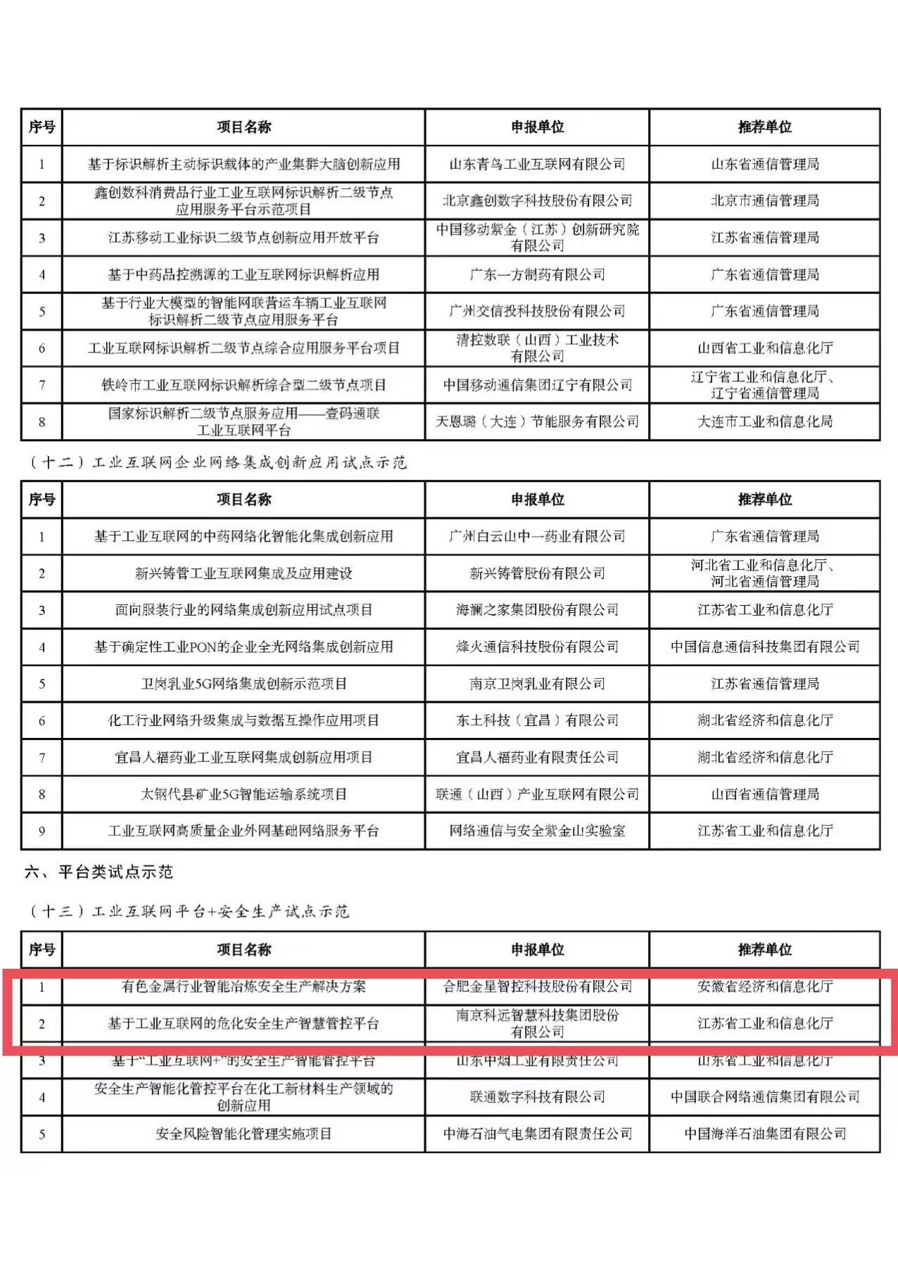 為深入貫徹《國務院關于深化“互聯網+先進制造業”發展工業互聯網的指導意見》,根據《工業和信息化部辦公廳關于組織開展2023年工業互聯網試點示范項目申報工作的通知》(工信廳信管函﹝2023﹞319號),經企業申報、地方推薦、專家評審,形成2023年工業互聯網試點示范名單。現予以公示,歡迎社會各界監督。如有異議,請在公示期內與我們聯系。