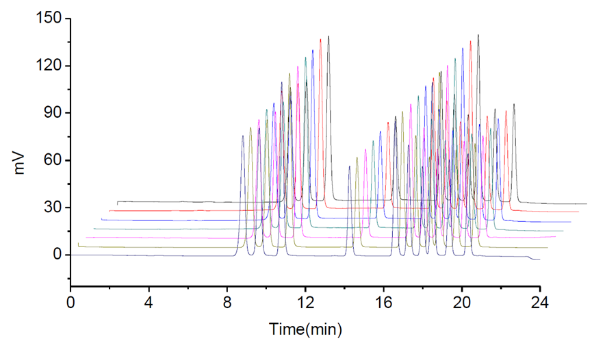 3 10種氨基甲酸酯連續進樣疊加譜圖