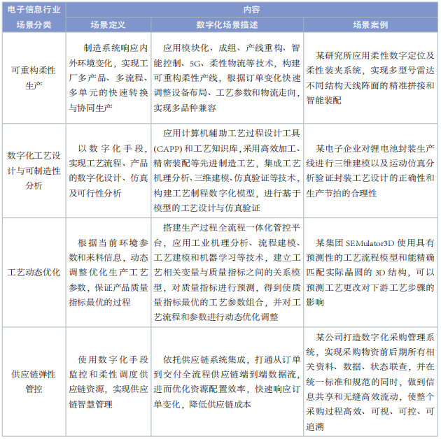表3 電子信息行業(yè)數(shù)字化轉(zhuǎn)型典型場景內(nèi)容