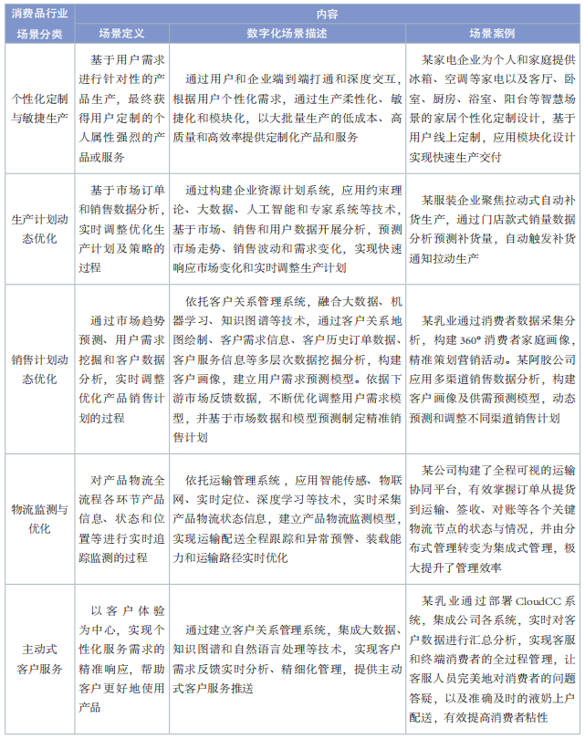表 4 消費品行業(yè)數(shù)字化轉(zhuǎn)型典型場景內(nèi)容