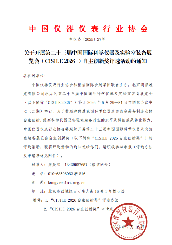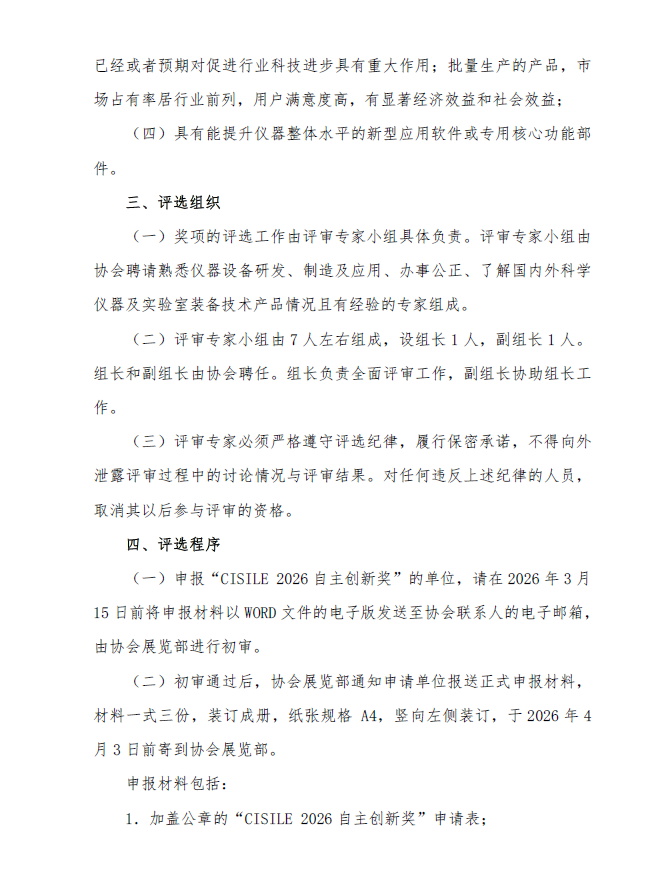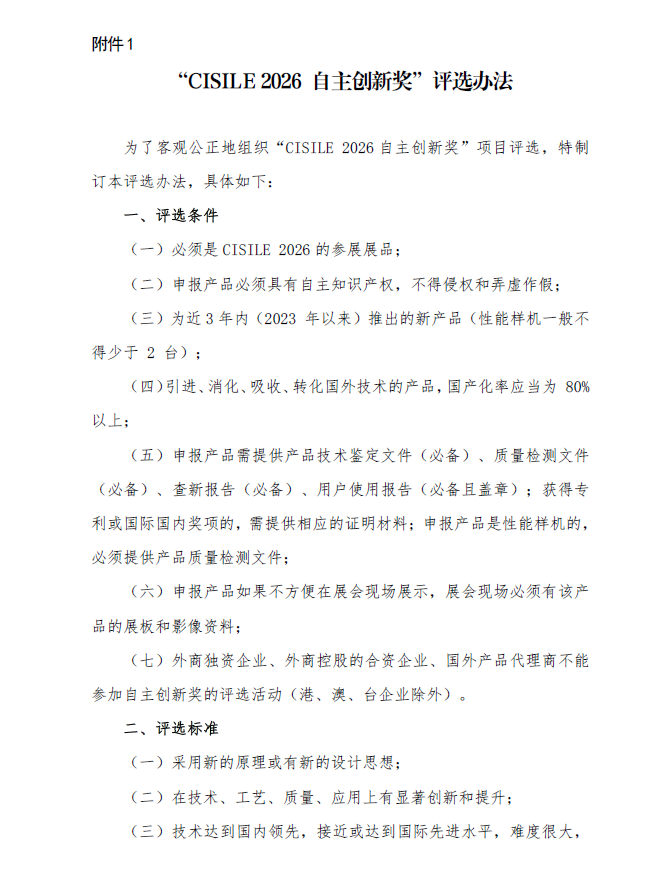 會(CISILE 2026 )自主創新獎評選活動的通知