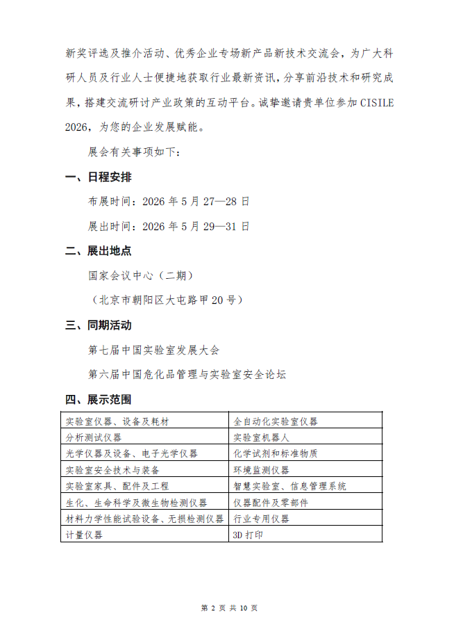摘要:第二十三屆中國國際科學儀器及實驗室裝備展覽會將于2026年5月29-31日在國家會議中心(二期)舉辦,本屆 CISILE 展覽面積預計 30000平方米,集中展示實驗室儀器及裝備、分析儀器、光學儀器、試驗儀器、生命科學儀器……