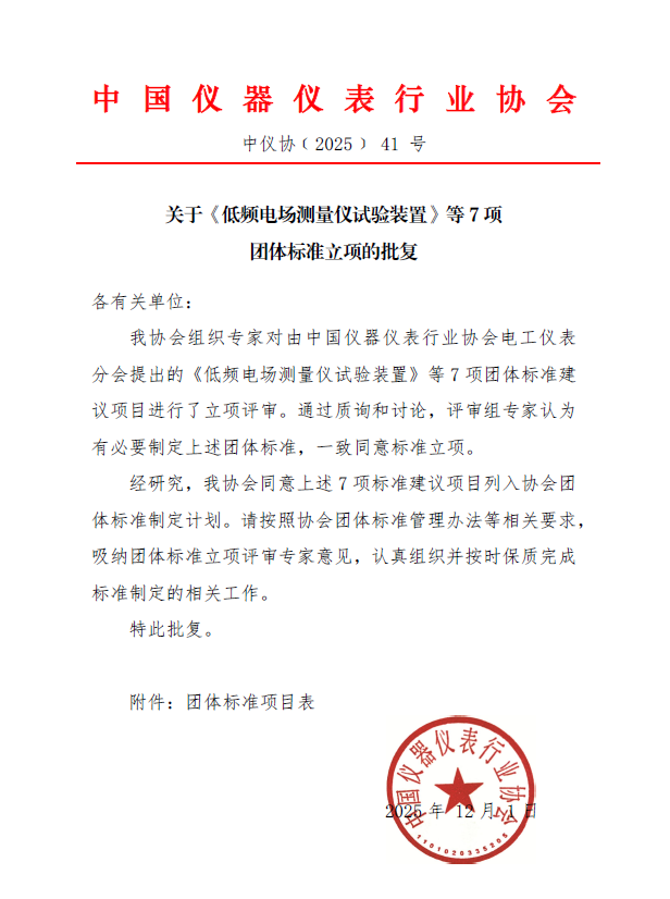 關(guān)于《低頻電場(chǎng)測(cè)量?jī)x試驗(yàn)裝置》等7項(xiàng)團(tuán)體標(biāo)準(zhǔn)立項(xiàng)的