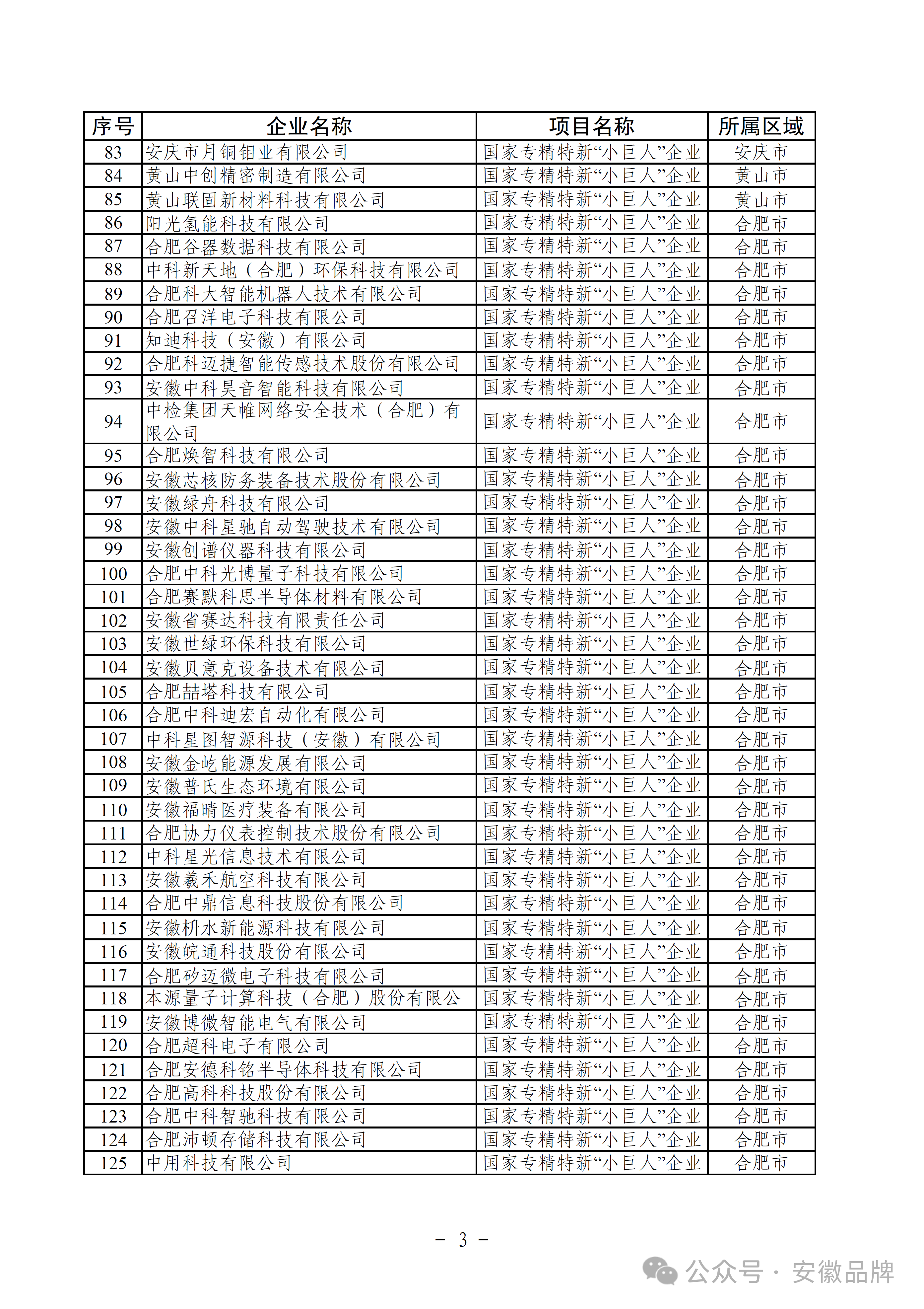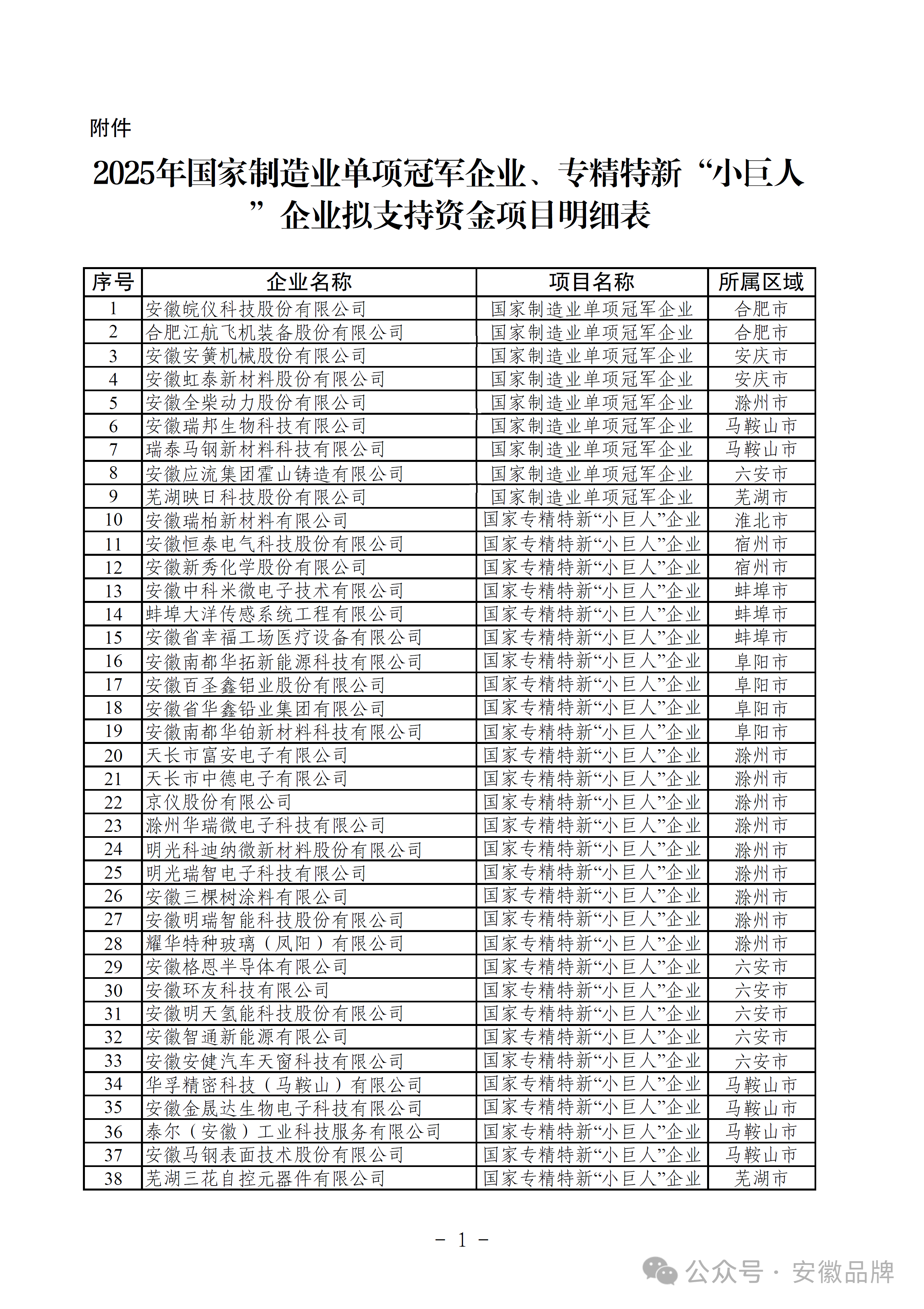 安徽省工業(yè)和信息化廳2025年國(guó)家制造業(yè)單項(xiàng)冠軍企業(yè)、專(zhuān)精特新“小巨人”企業(yè)擬支持資金項(xiàng)目公示