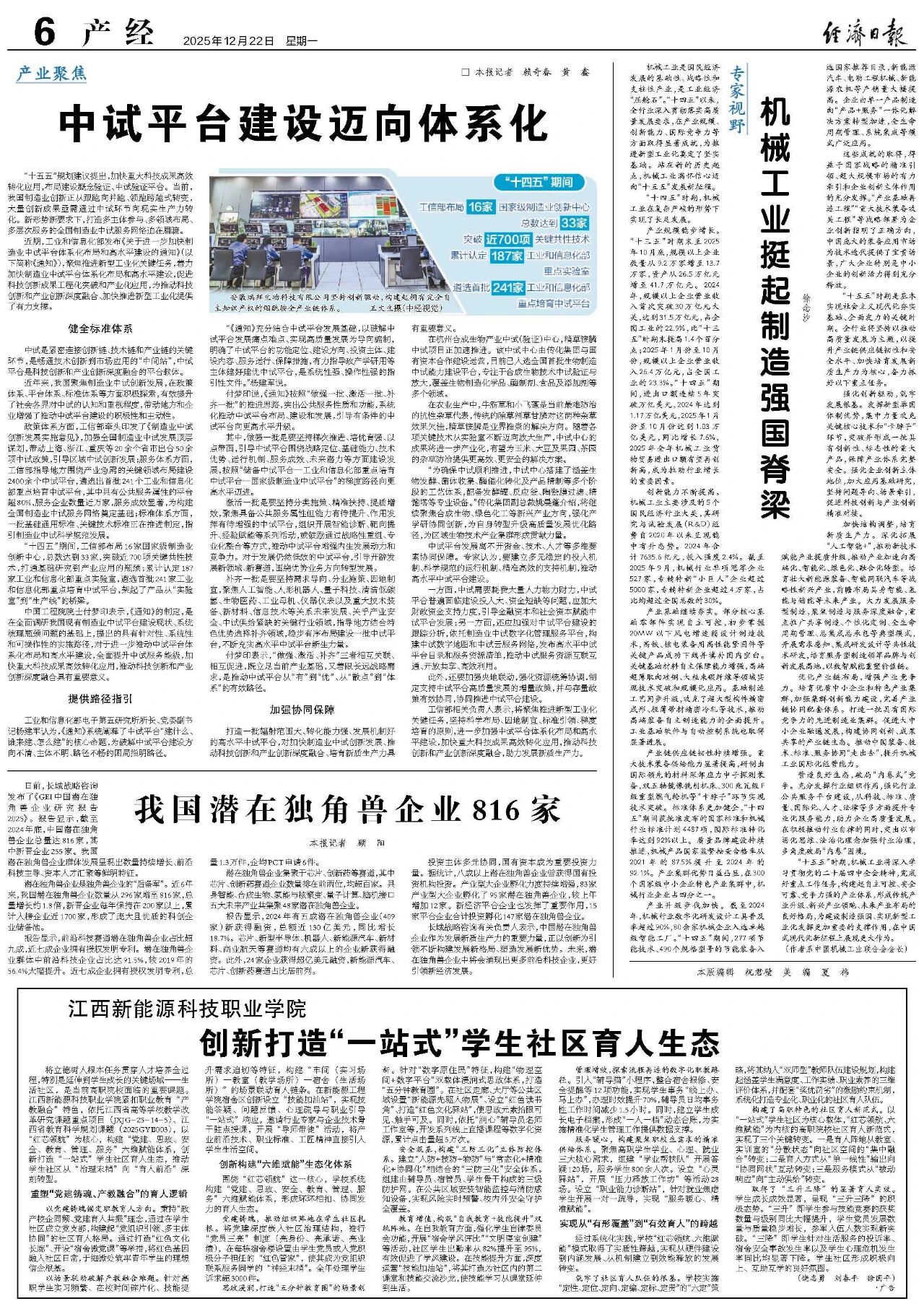 12月22日,《經濟日報》刊發中國機械工業聯合會黨委書記、會長徐念沙署名文章《機械工業挺起制造強國脊梁》。全文如下: