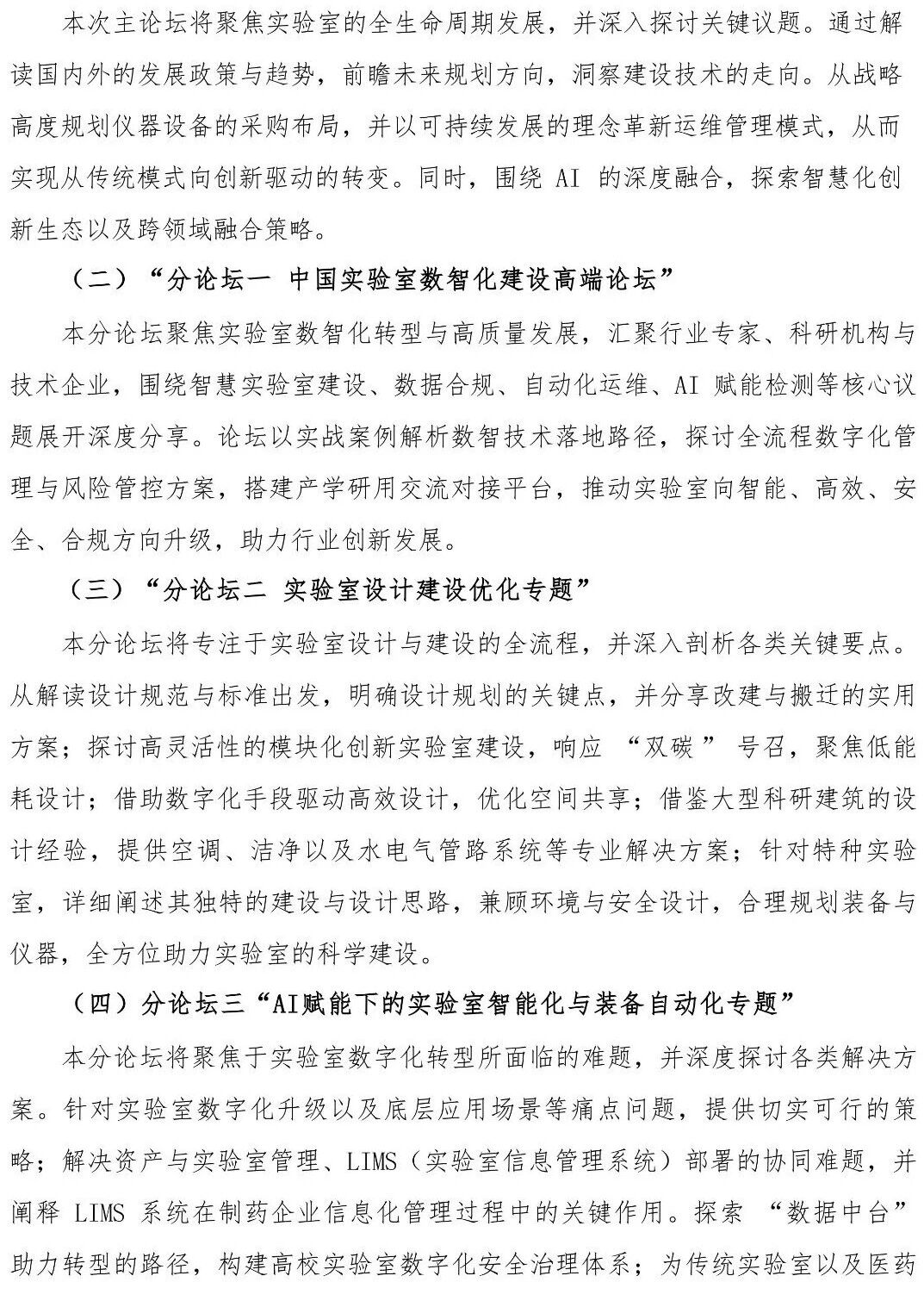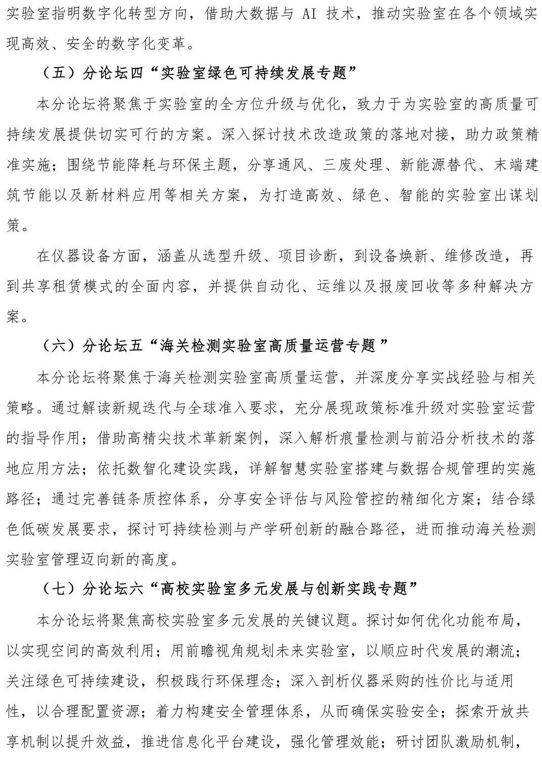 第七屆中國(guó)實(shí)驗(yàn)室發(fā)展大會(huì)設(shè)置一個(gè)主論壇和八個(gè)分論壇。主論壇以前瞻・融合・創(chuàng)新——實(shí)驗(yàn)室生態(tài)發(fā)展新機(jī)遇”為主題,八個(gè)分論壇分別在實(shí)驗(yàn)室綠色可持續(xù)發(fā)展、海關(guān)檢測(cè)實(shí)驗(yàn)室高質(zhì)量運(yùn)營(yíng)、實(shí)驗(yàn)室設(shè)計(jì)建設(shè)與優(yōu)化、AI賦能下的實(shí)驗(yàn)室智能化與裝備自動(dòng)化、高校/科研院所實(shí)驗(yàn)室多元發(fā)展與創(chuàng)新、危化品管理與實(shí)驗(yàn)室安全、中國(guó)實(shí)驗(yàn)室數(shù)智化建設(shè)、材料測(cè)試技術(shù)與裝備創(chuàng)新應(yīng)用等方面,全面深入地探討從實(shí)驗(yàn)室設(shè)計(jì)規(guī)劃、建設(shè)、運(yùn)維等整個(gè)生態(tài)系統(tǒng)的寶貴經(jīng)驗(yàn)、見(jiàn)解和前沿解決方案,審視實(shí)驗(yàn)室在全生命周期中面臨的挑戰(zhàn)與機(jī)遇,共同探索創(chuàng)新的理念和方案,推動(dòng)實(shí)驗(yàn)室的高效卓越發(fā)展。
